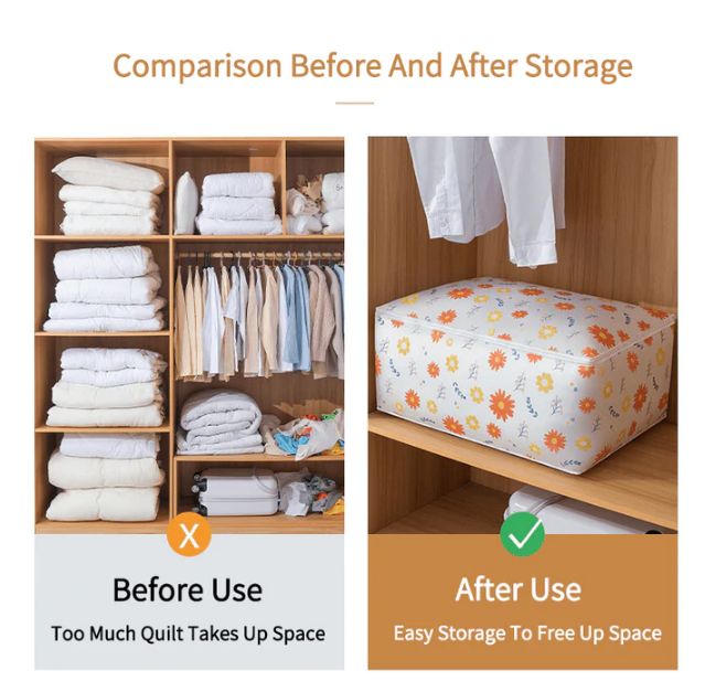 A spacious space can store quilts, clothing, pillows, toys, shoes, blankets, etc. Large capacity to meet different needs, to solve your troubles about the storage of quilts and clothing.